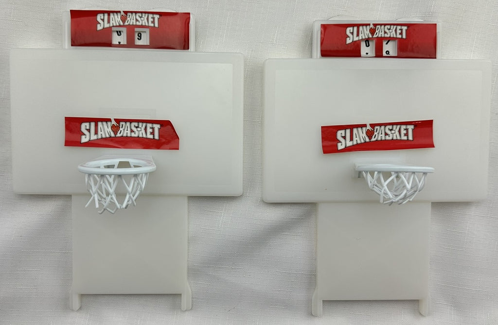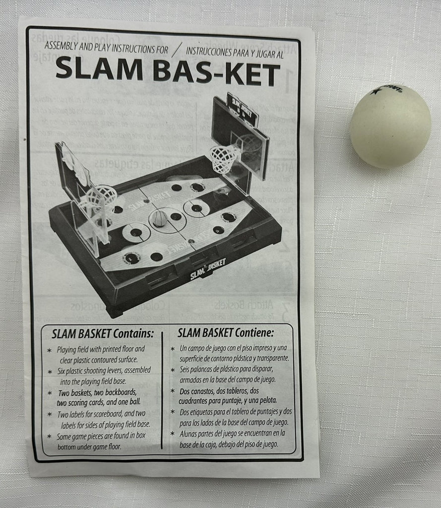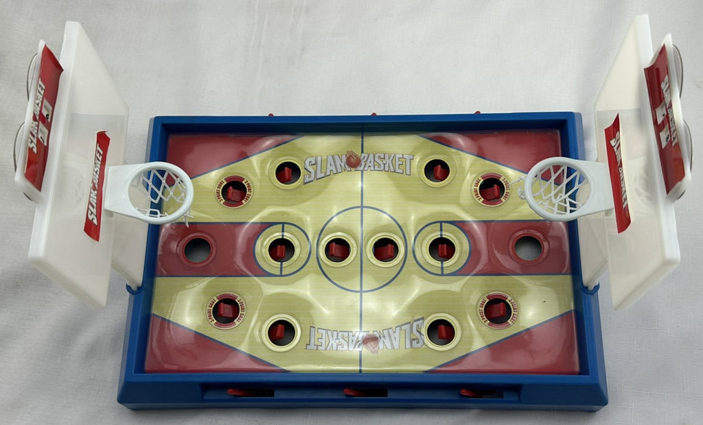 Players use spring-loaded levers to pop the ping-pong ball "basketball" up in the air and through the opponent's hoop. Scoring is the same as real basketball. Playing field is dimpled to coax the ball towards the levers. Levers are angled to shoot the ball at the hoop.
