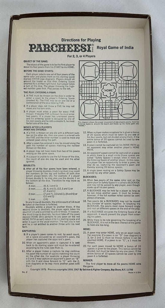 Parcheesi Game Deluxe Edition - 1982 - Selchow & Righter - New Old Stock
