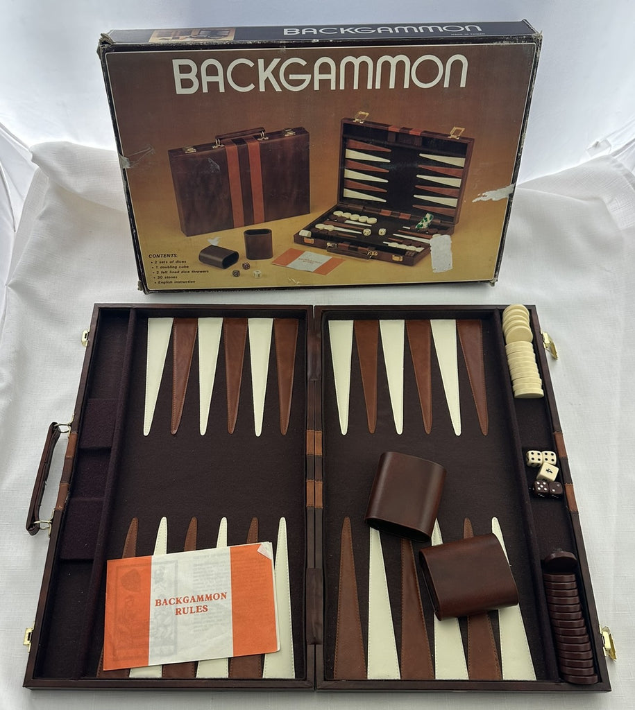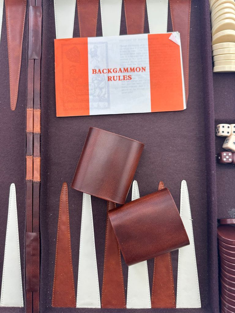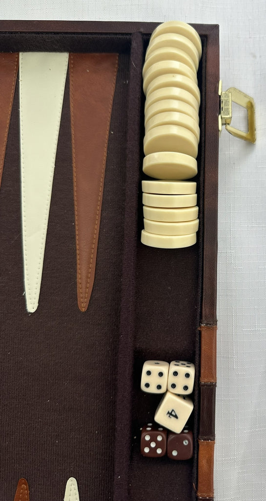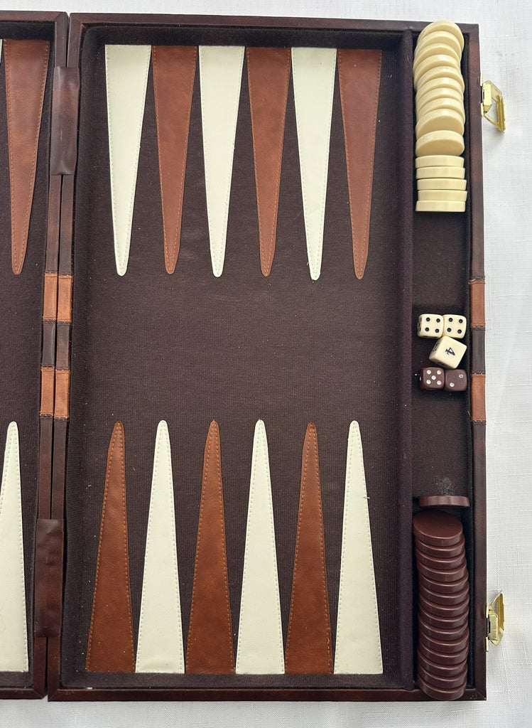 Backgammon Set 17 1/2" x 11" Brown/White - Complete - Great Condition