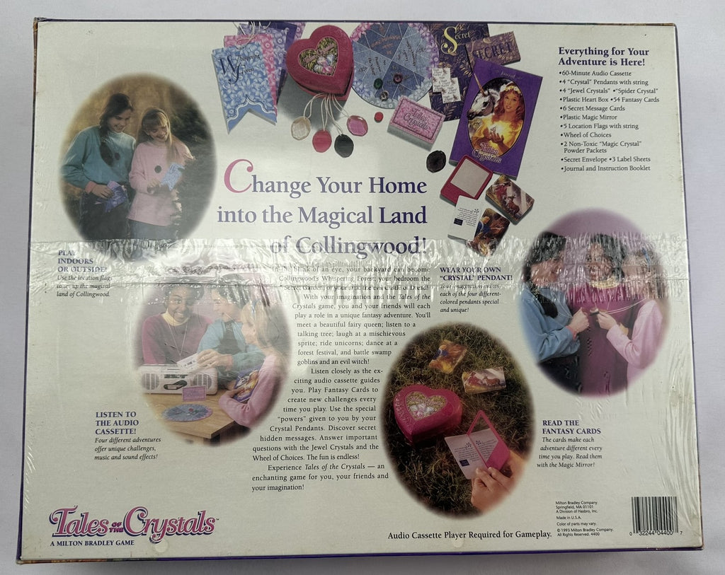 Tales of the Crystals is a unique imagination game for up to four players. It features an exciting audio cassette to guide you and your friends through four amazing adventures. There are five basic steps that you will do when playing an adventure. They are:1. Listen to the audio cassette and turn it off as directed.
