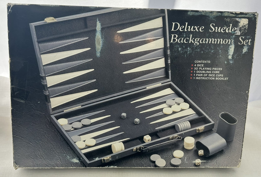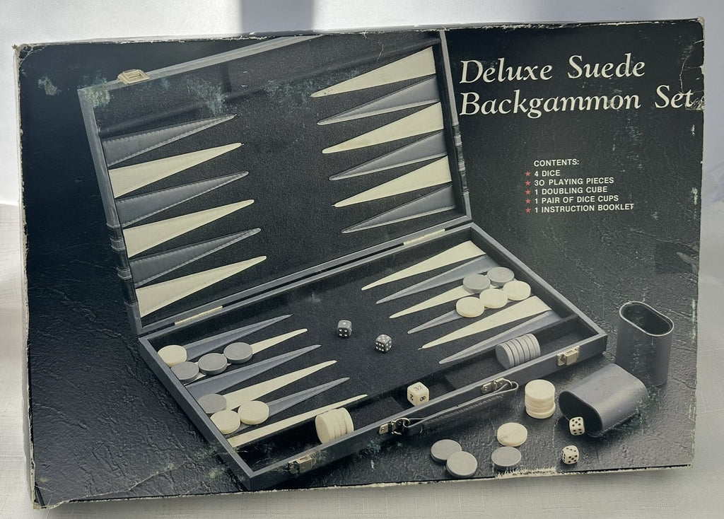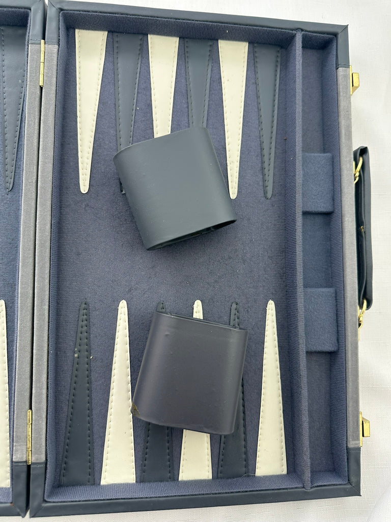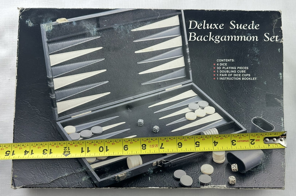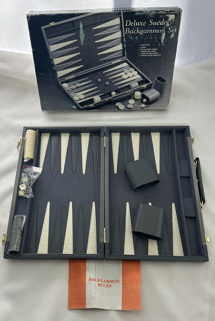 Deluxe Suede Backgammon Set 15" x 10" Gray/White - Complete - Great Condition