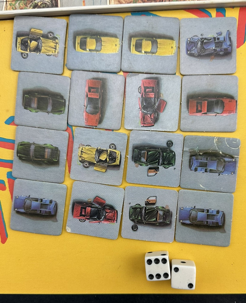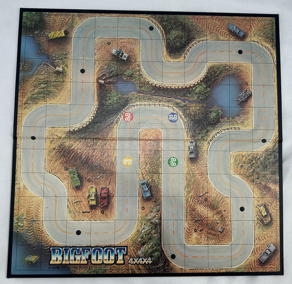 Your weapon against these high priced European sports cars - a tiny molded plastic Bigfoot, the king of the 80's monster trucks. The battlefield - an 11x11 grid, with both off-road terrain and an oval track. The goal - drive around the board, crushing the other cars without pity, whilst trying to keep your car away from the other players. The winner - the first one to crush four cars of the correct color.