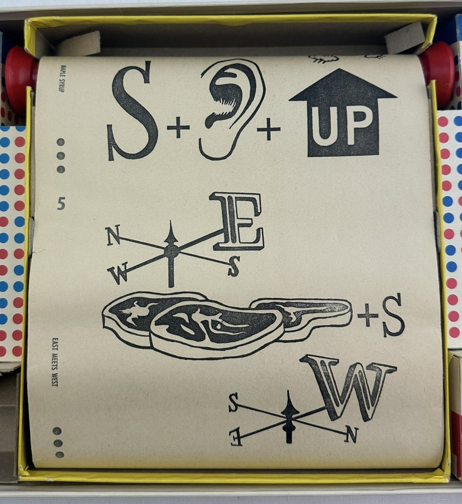 A rebus puzzle is covered by matching pairs of items. The items are covered by numbered slides. The slides are numbered one through thirty in the Milton Bradley editions and one through twenty-five in all other editions. each player or team chooses two numbered slides and reveal whatever items are beneath the slides. If the items match, then the items are removed to reveal parts of the rebus puzzle of which the team may hazard a guess. Solve the rebus puzzle and receive the value of all matching pairs possessed in play money. The side that has more money after three rebuses wins.