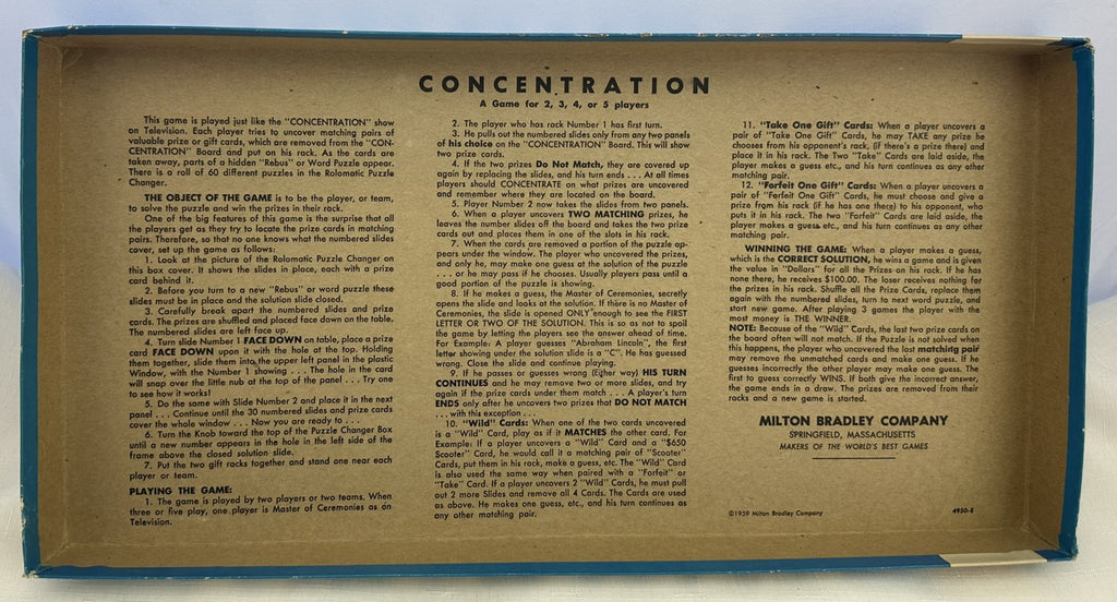 Concentration Game 7th Edition - 1966 - Milton Bradley - Great Condition