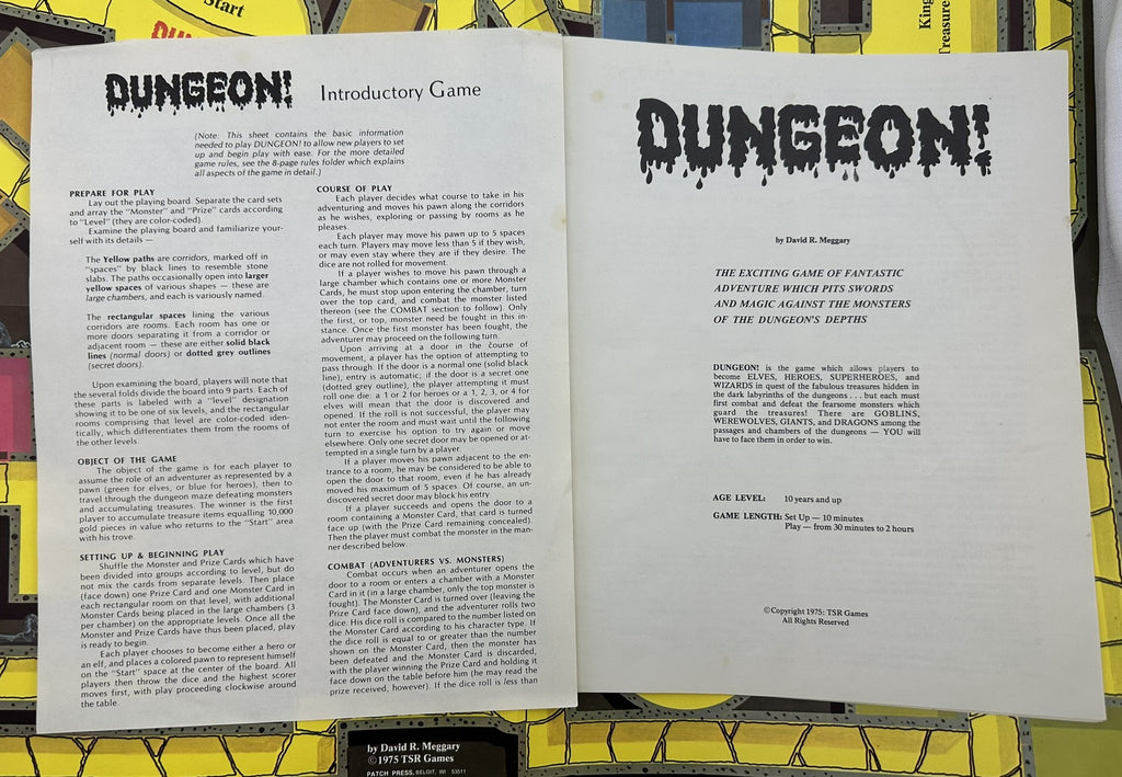 In many ways Dungeon! is similar to Dungeons & Dragons, although much simplified and transformed into a board game. Players explore a dungeon that is divided into levels of increasing difficulty, fighting monsters for valuable treasure. As players venture deeper into the dungeon, the monsters become more difficult and the treasure more valuable. Several character classes each have slightly different fighting abilities – most notably the wizard, who can cast spells. Combat is simulated using dice; players roll the dice to attack a monster, and if unsuccessful, the dice are rolled to determine the effect of the monster's counter-attack.