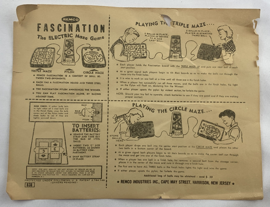 Fascination Game Electric Maze Game - 1968 - Remco - Very Good Condition