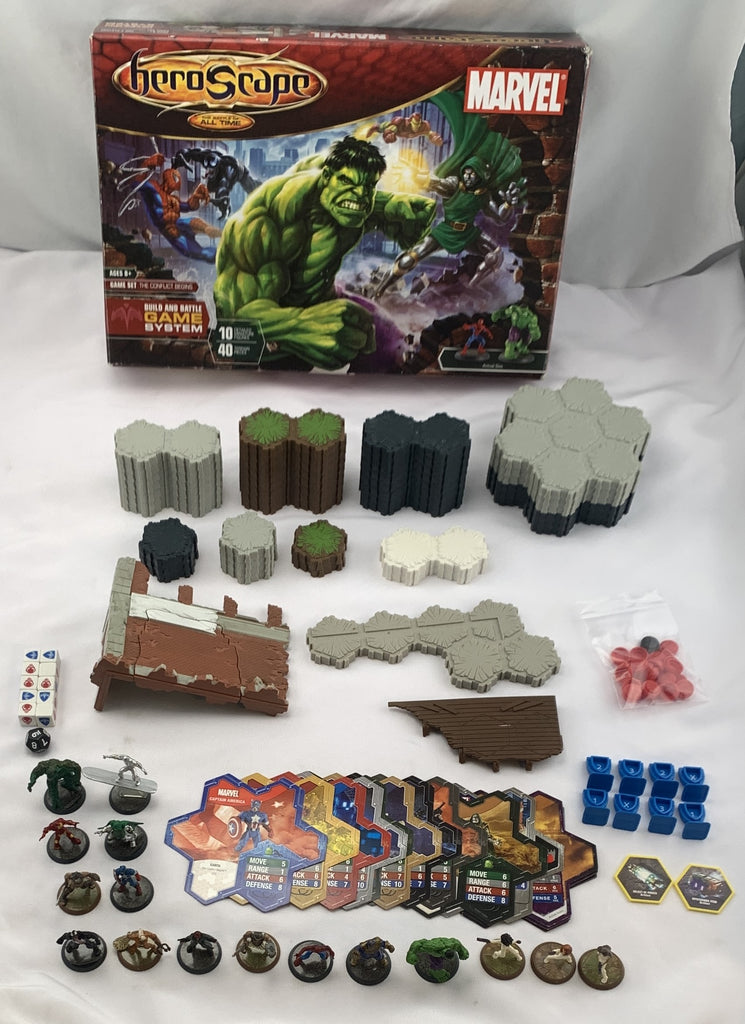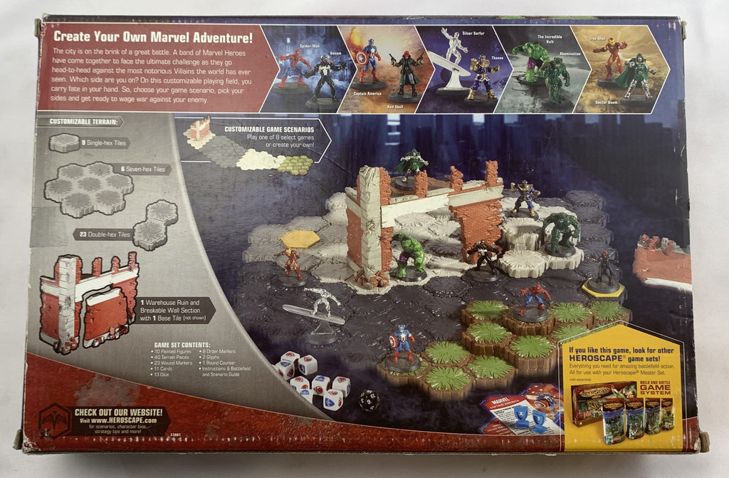 Heroscape Marvel: The Conflict Begins features plastic figures of Marvel Universe heroes and villains - each with a card to control movement and combat strength. Marvel HeroScape is part of the HeroScape series of games.