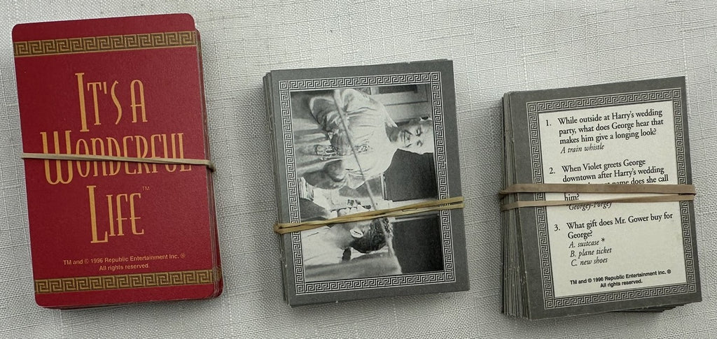 Trivia/board game based on the popular movie. The object is to be the first player to lead George through his life by collecting 5 different friends and family cards and an $8000 card.