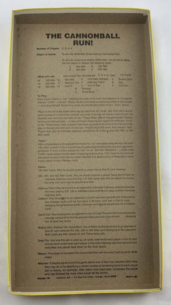 The Cannonball Run Game - 1981 - Cadaco - Great Condition