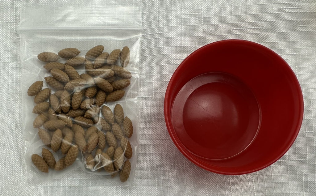 You are a squirrel running around the forest in a figure-eight track, picking up pine cones to bring back to your hoard (which you can enter once every lap). The first squirrel to gather 15 pine cones in his hoard wins. Spaces on the track give you one to three pine cones when you land on them, and the special die makes you lose your move now and then --instead, every squirrel gets a free pine cone.